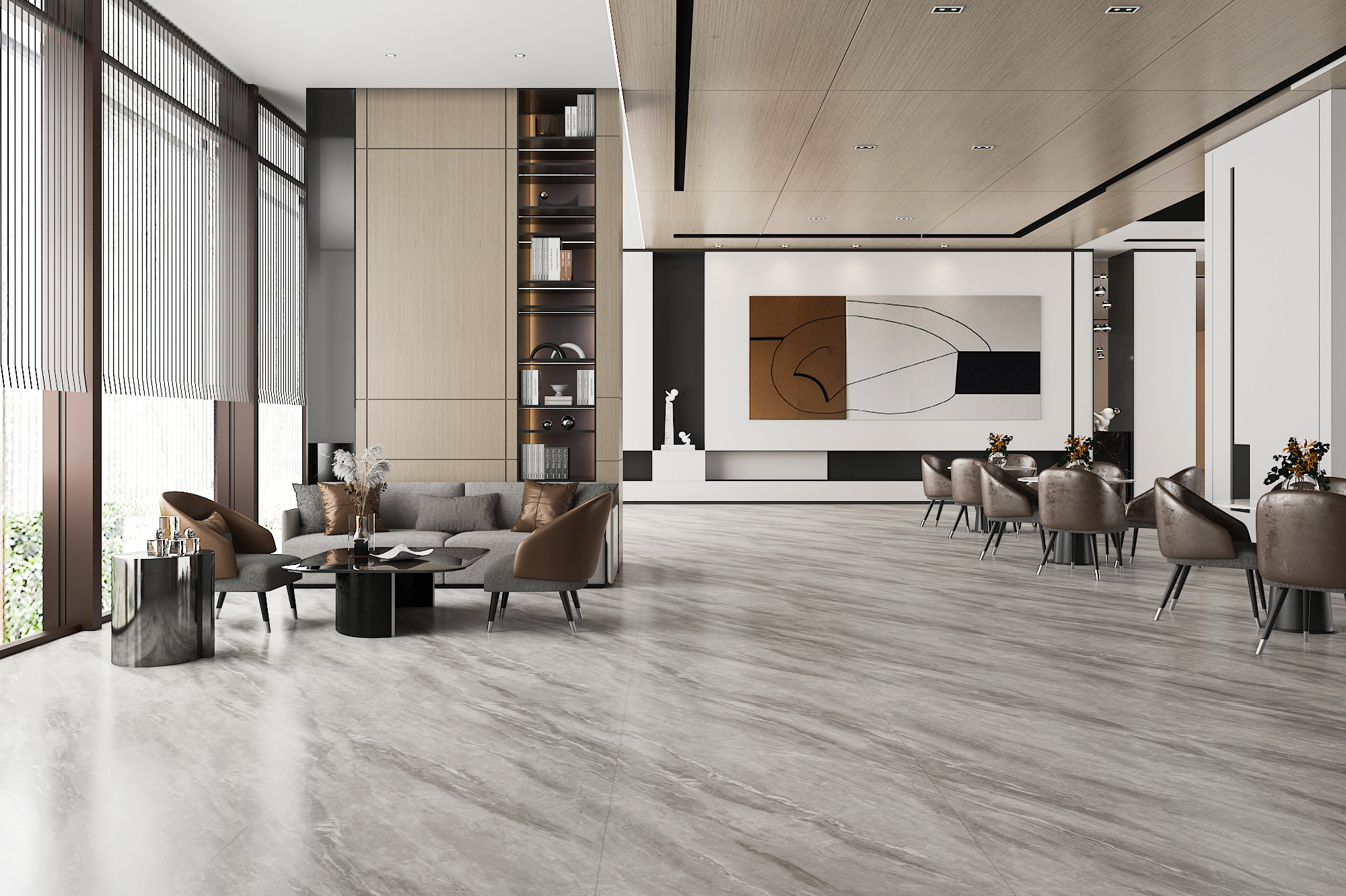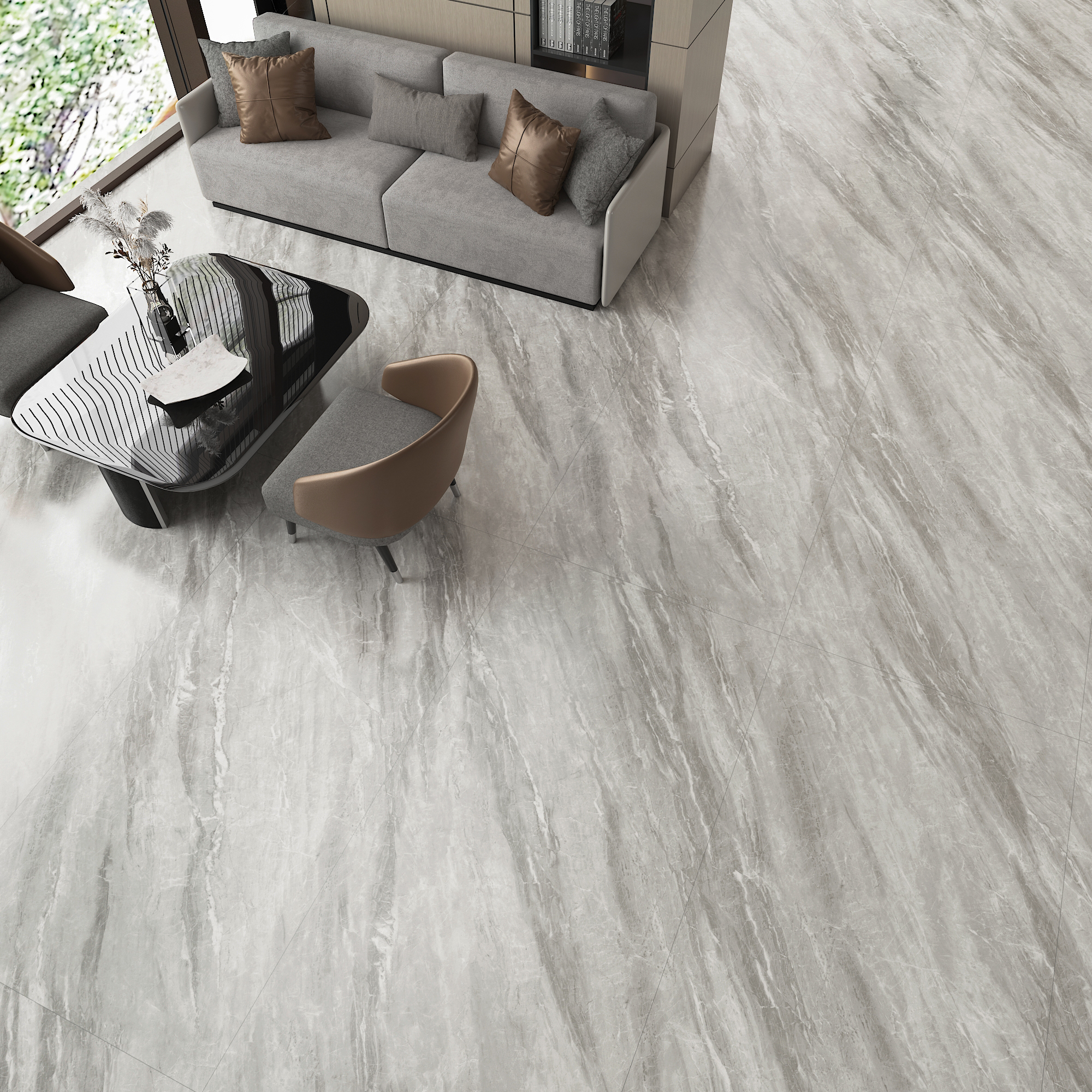 Premium stone-look porcelain tile with soft matte finish, industry-grade low water absorption, durable surface performance, and versatile design compatibility—ideal for residential and commercial projects.