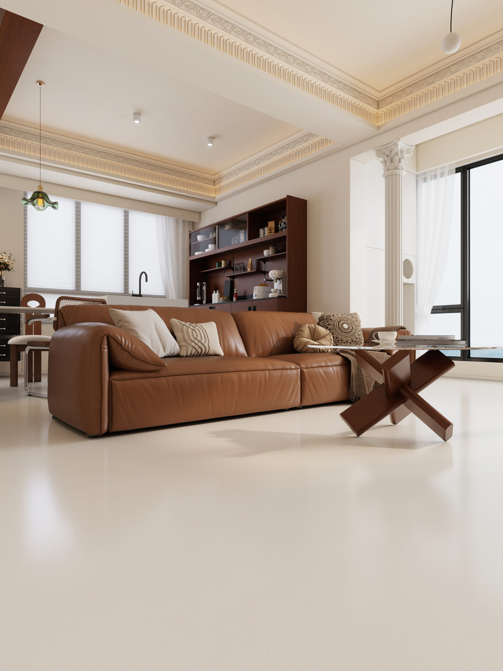 Engineered with a precision 32° soft-matte system and micro-sparkle particles, the surface delivers a subtle velvet glow that enhances spatial depth without glare. The finish feels delicate to the touch, creating a calm, warm, and premium atmosphere suitable for living spaces, hospitality interiors, and high-end commercial environments.
