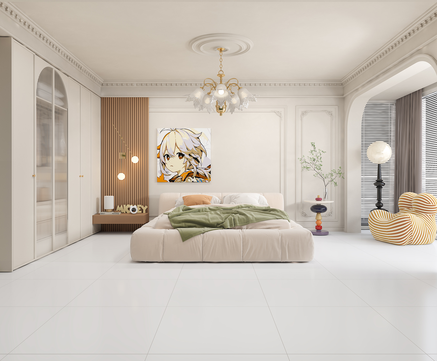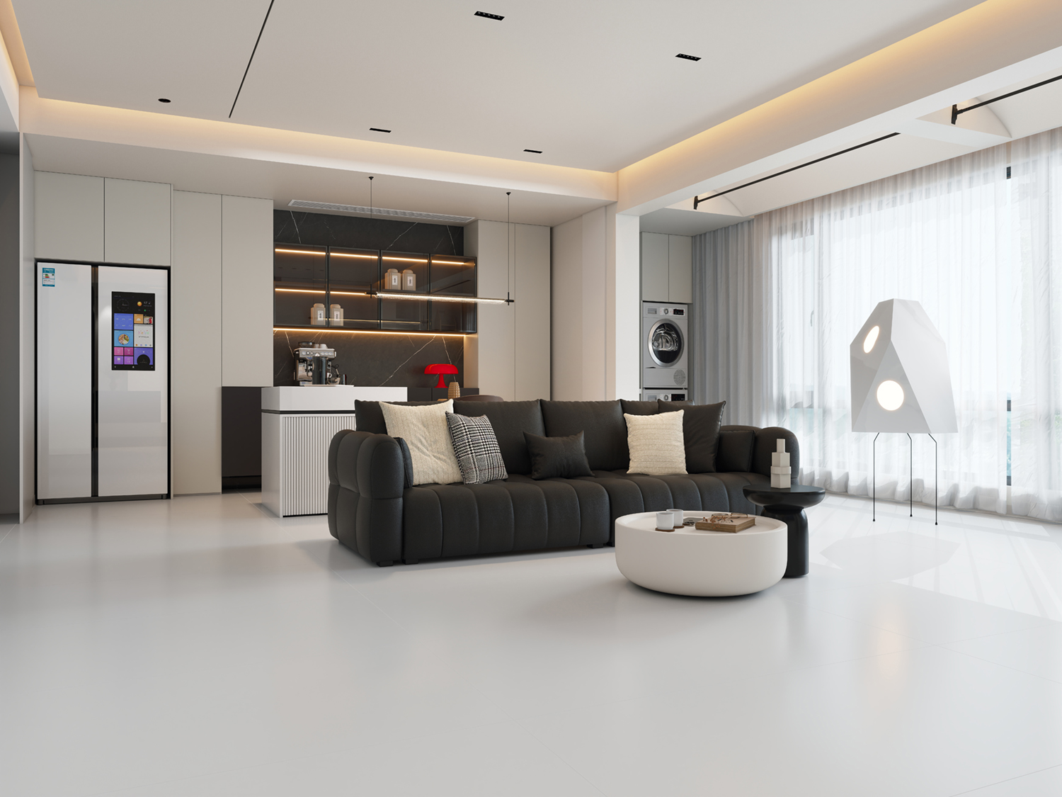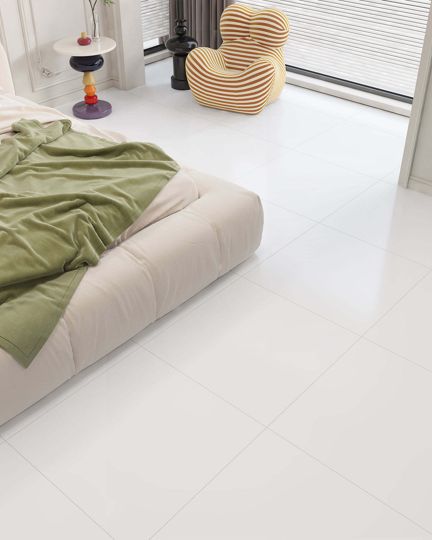 The tile adopts a 58° ultra-white body with high purity, improving color clarity and spatial brightness.