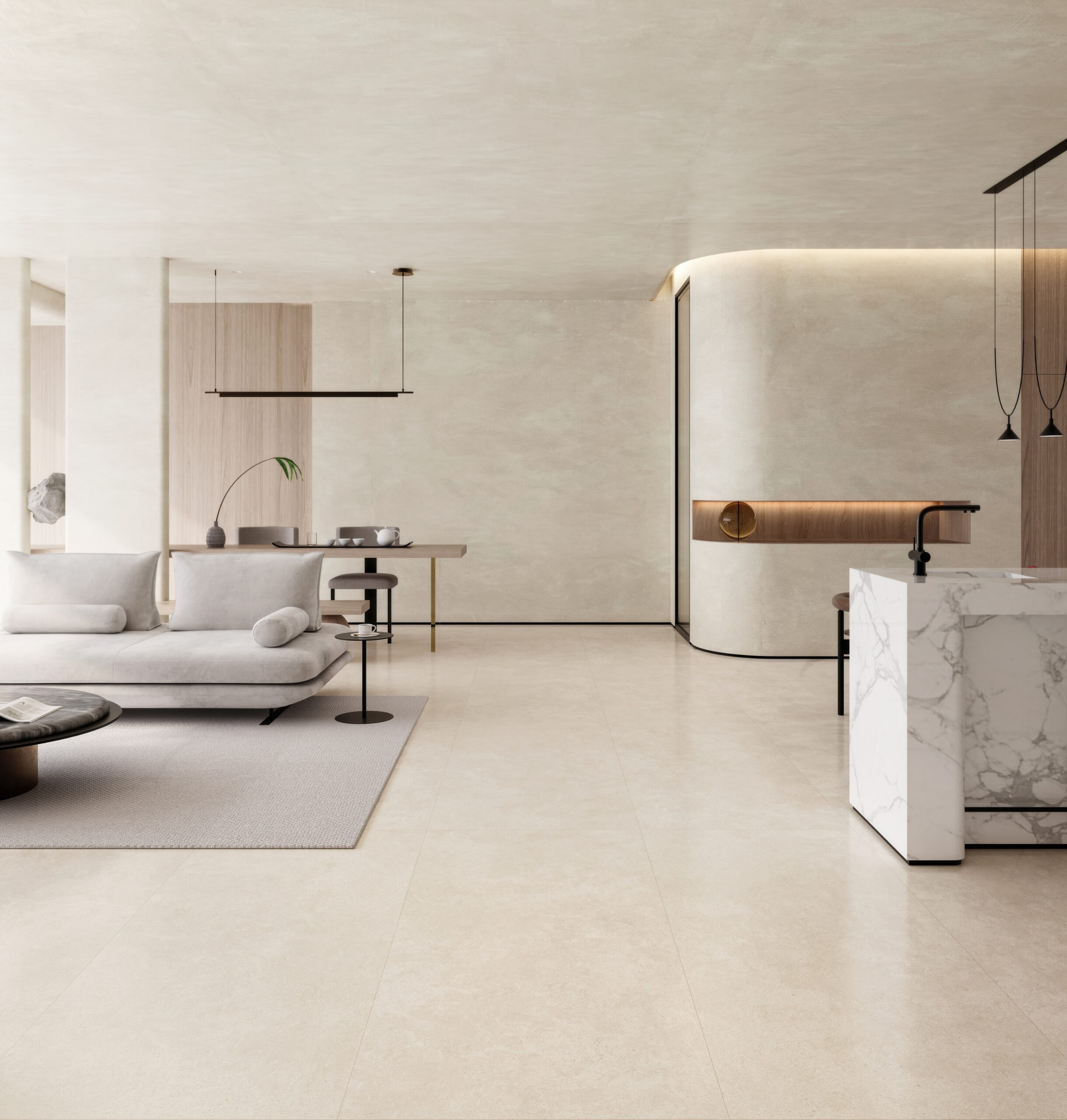 Premium stone-look porcelain tile with soft matte finish, industry-grade low water absorption, durable surface performance, and versatile design compatibility—ideal for residential and commercial projects.