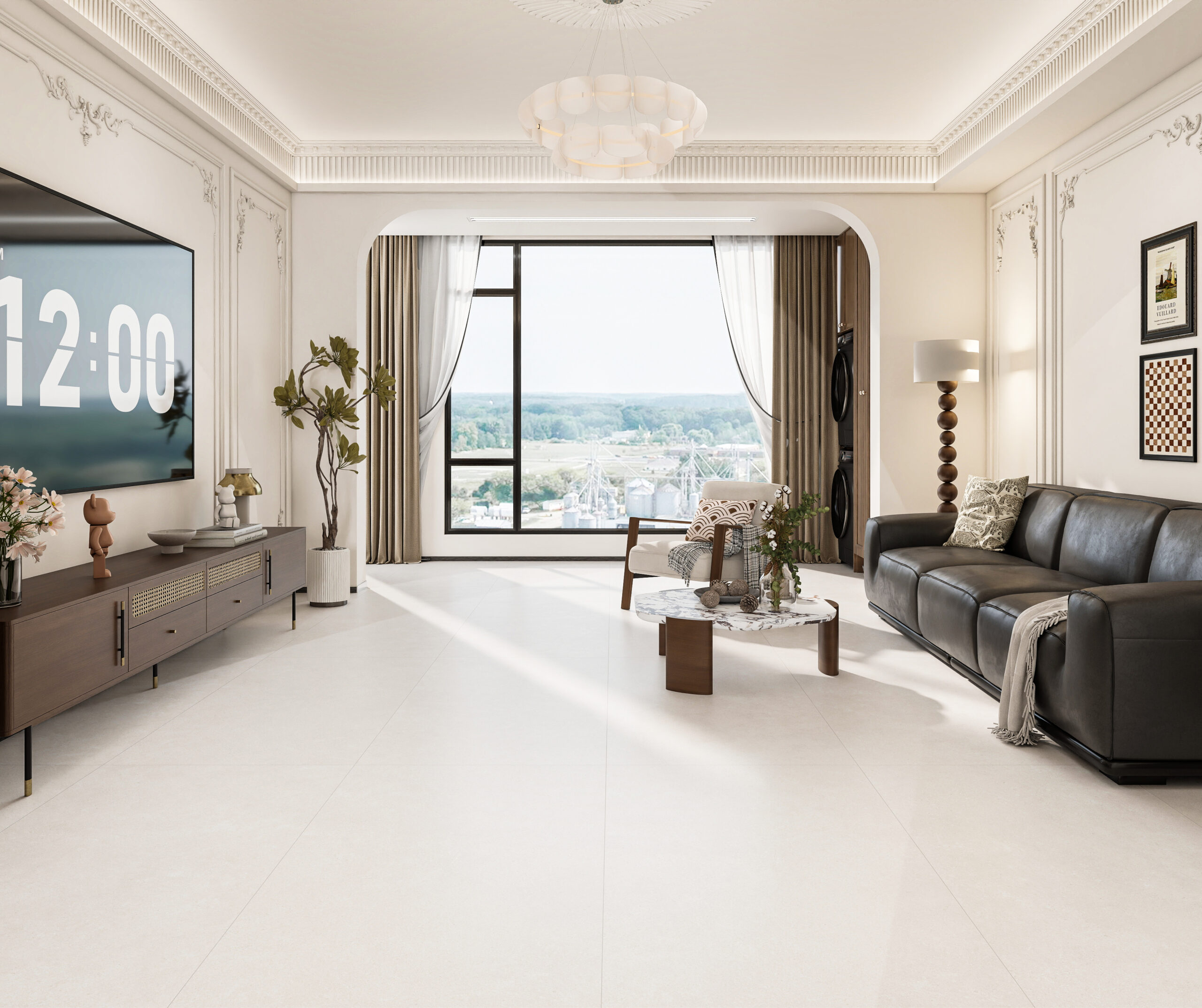 Premium stone-look porcelain tile with soft matte finish, industry-grade low water absorption, durable surface performance, and versatile design compatibility—ideal for residential and commercial projects.