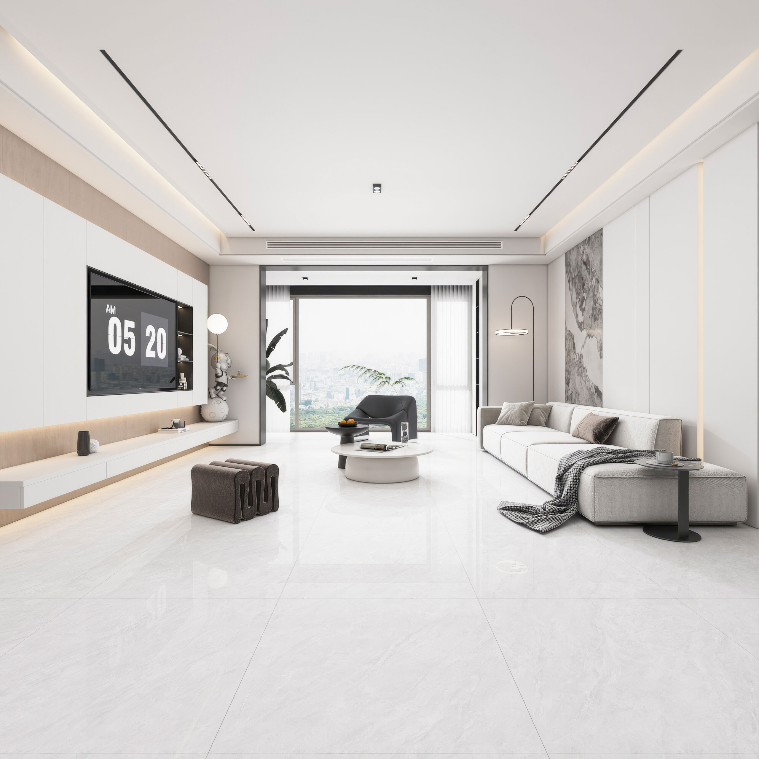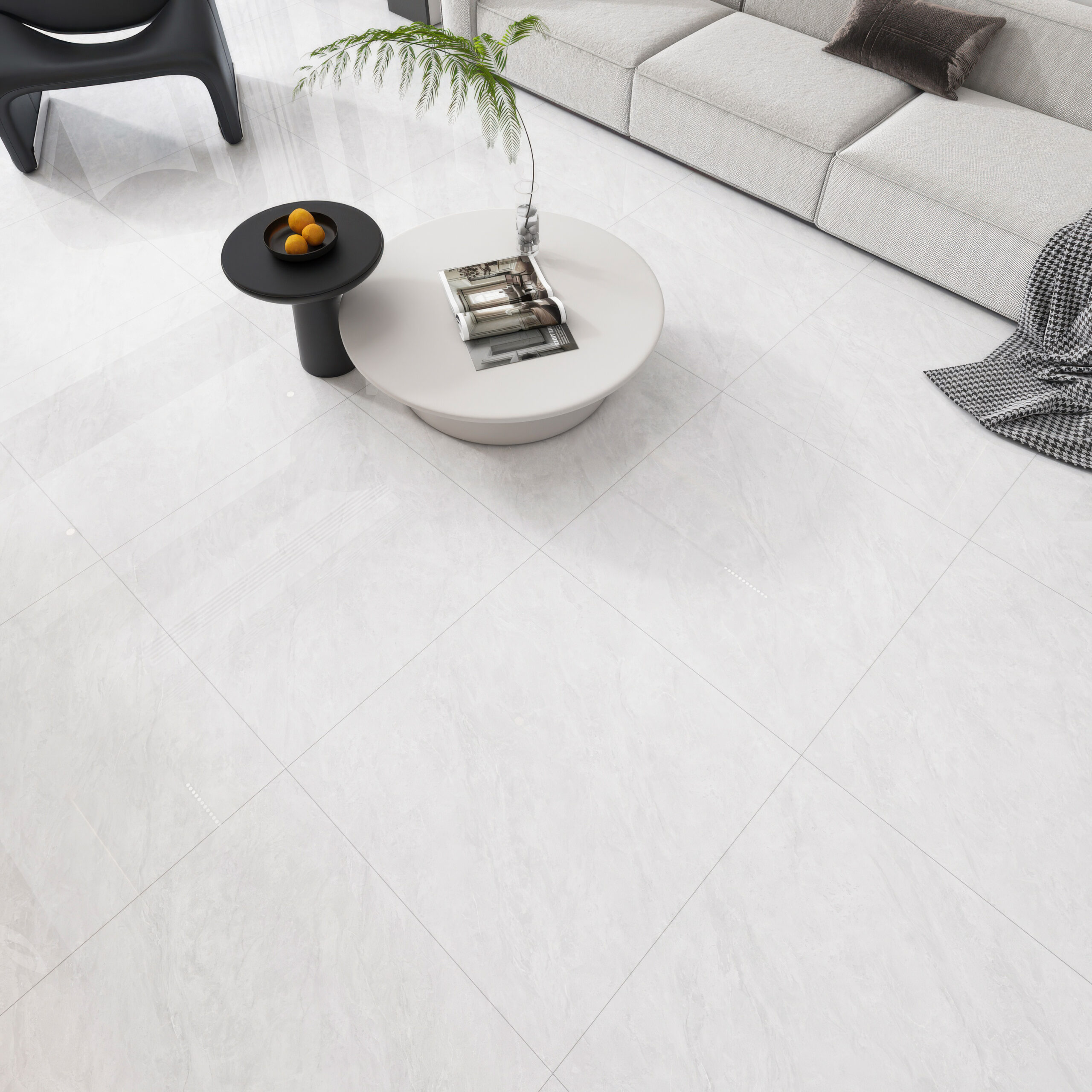 Manufactured using high-purity mineral materials and compacted with a 10,000-ton press, the tile body achieves a 45° whiteness level with minimal impurities. The result is a clean, flawless base tone that enhances overall brightness and color accuracy across any space.