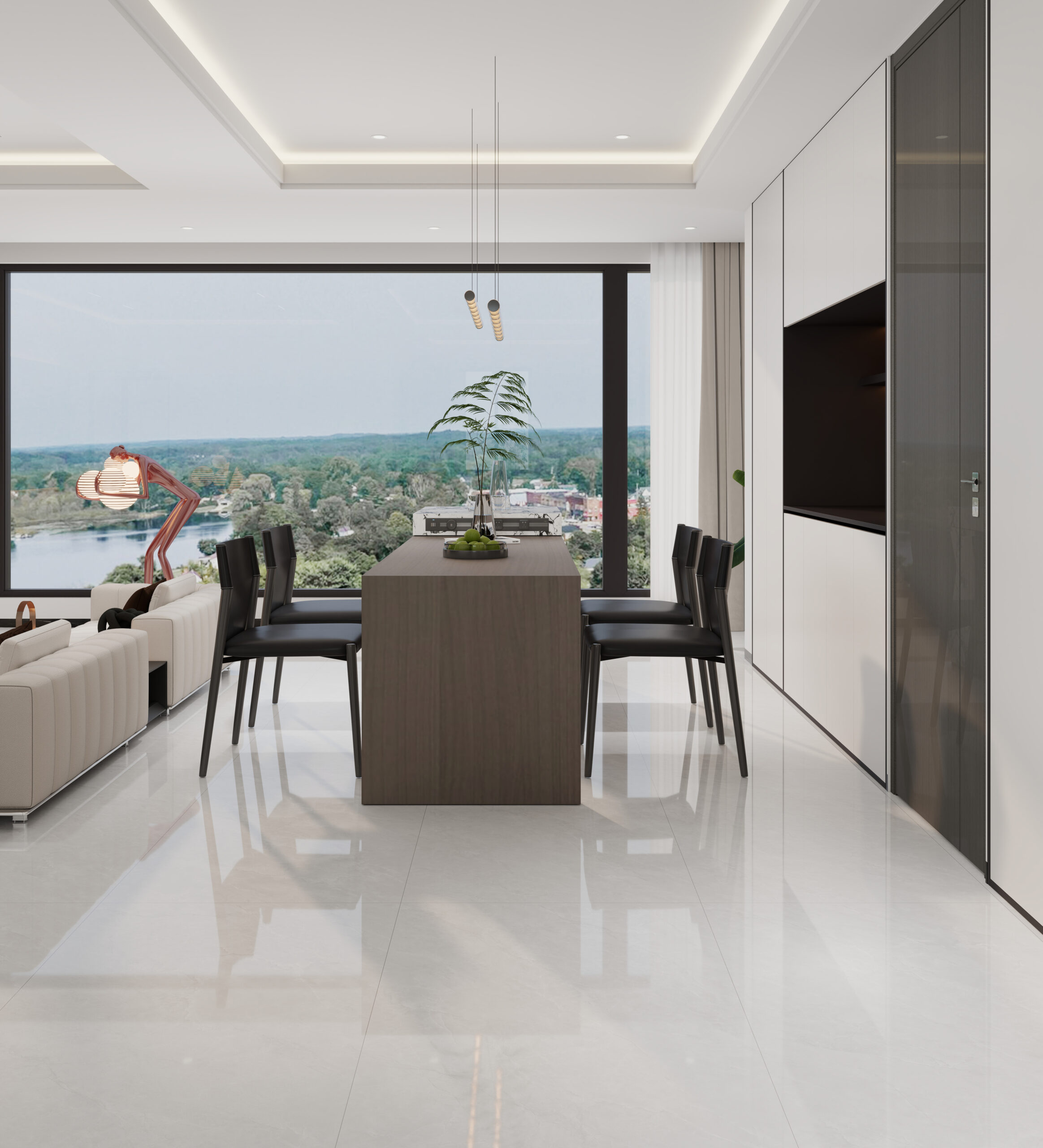 Premium porcelain tile featuring a 45° ultra-white body, super-flat mirror glaze and random continuous veins. Engineered with Spanish imported glaze, nano anti-stain protection and double-zero water absorption for long-lasting clarity, durability and seamless architectural applications.