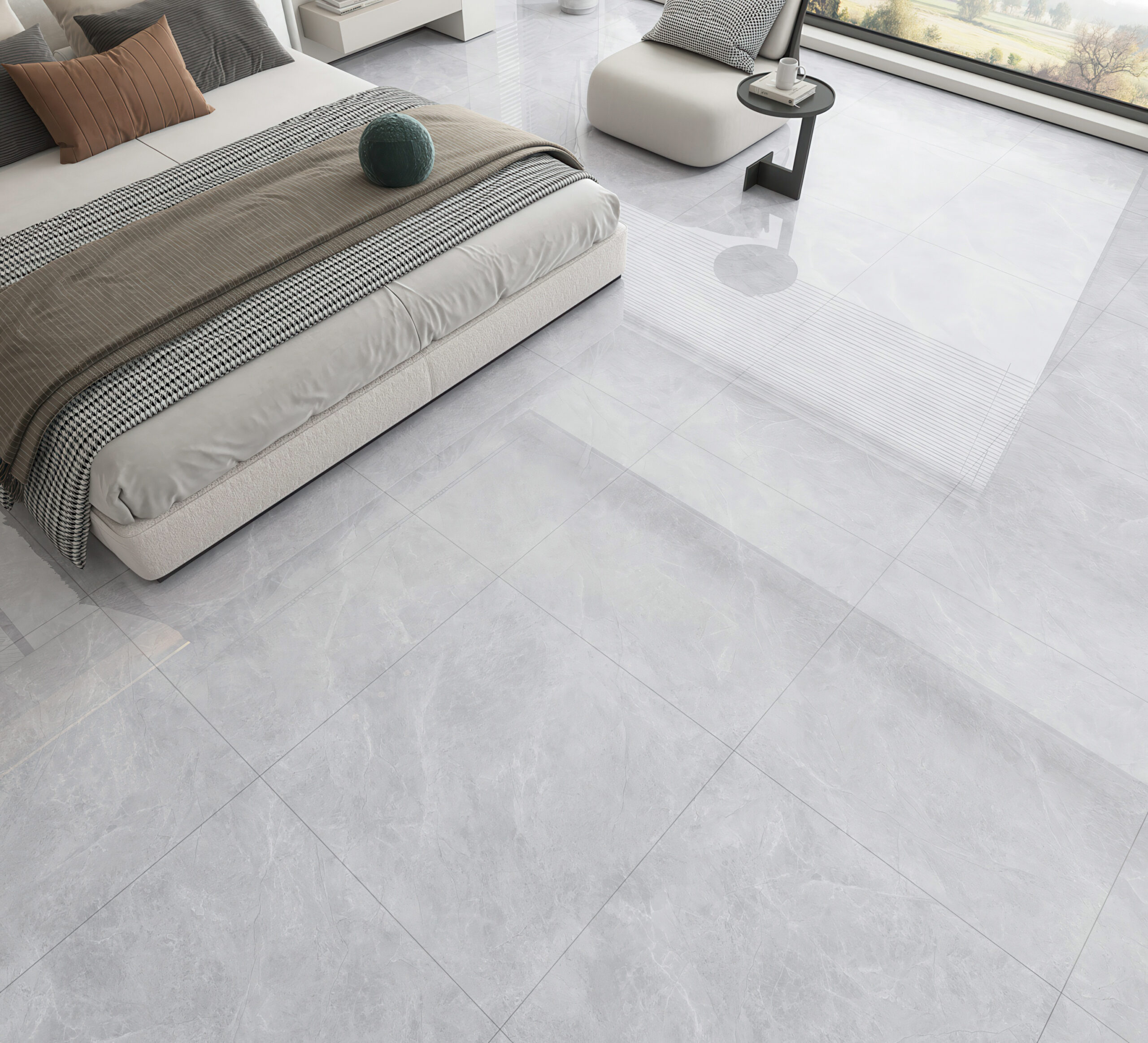 Manufactured using high-purity mineral materials and compacted with a 10,000-ton press, the tile body achieves a 45° whiteness level with minimal impurities. The result is a clean, flawless base tone that enhances overall brightness and color accuracy across any space.