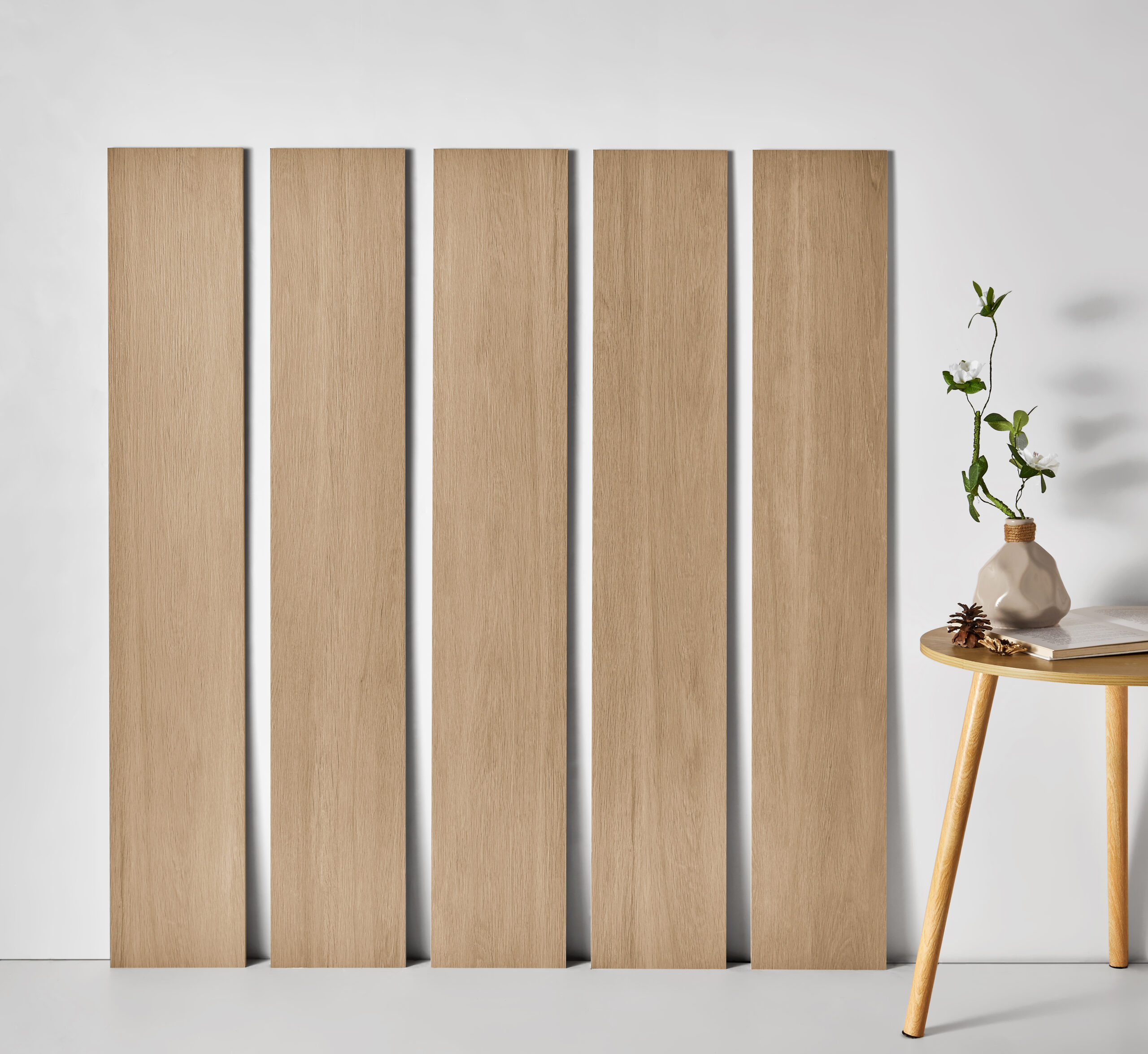 SkeloTile Porcelain Wood-Look Series redefines premium wood-look porcelain tiles with its dual engraved textures, 7° soft matte finish, and Italian ultra-fine dry grain glaze enriched with ≥25% nano-alumina. Inspired by the natural elegance of wood grain, the series delivers lifelike textures with subtle depth, ultra-low water absorption (≤0.018%), and exceptional durability, combining authentic aesthetics with high-performance technical excellence.